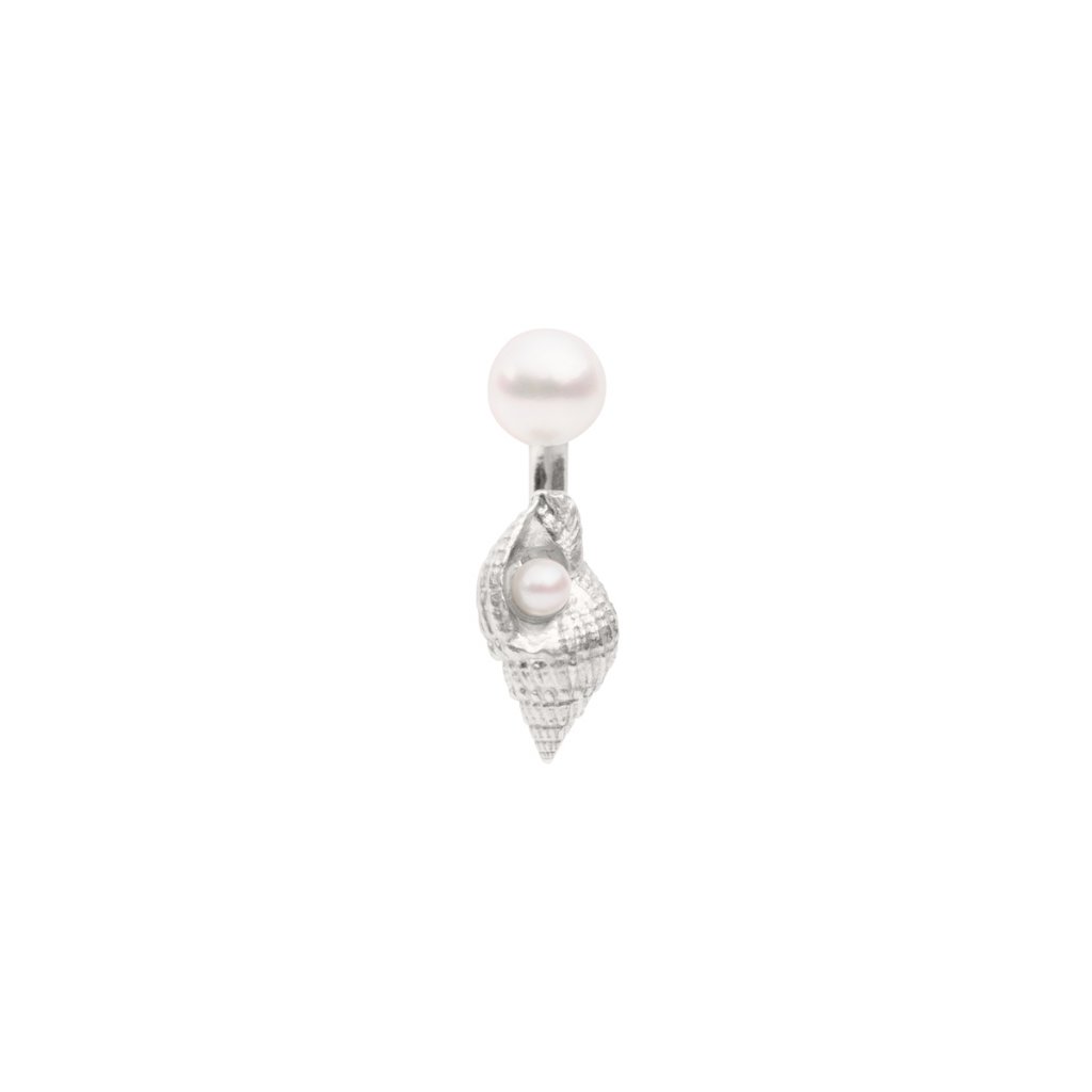 Concha double pearl earring B - silver