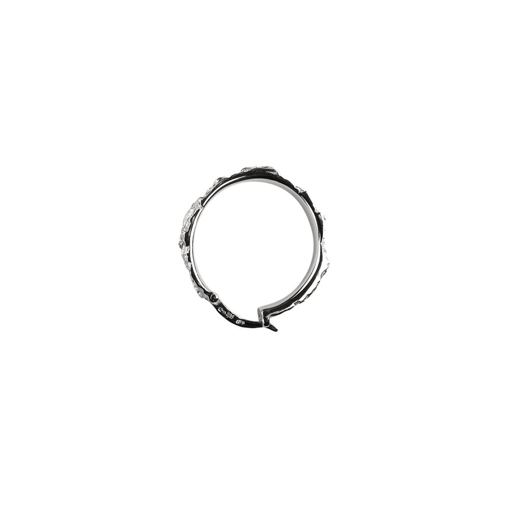 Tato náušnice je součástí naší FOAM kolekce. Jedná se o tlustší verzi našich klasických kroužků, které vyrábíme ve třech velikostech. Náušnice mají hrubší texturu a mají zapínání na klapku. Náušnice lze kombinovat napříč kolekcemi nebo v kombinaci s různými velikostmi této náušnice.